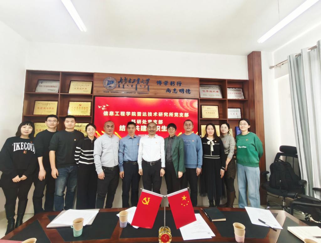 为深化党建与业务融合,2025年12月4日,内蒙古工业大学科研处党支部与信息工程学院雷达技术研究所党支部在明德楼303会议室开展以“党建引领聚合力,科研攻坚促发展”为主题结对共建组织生活。